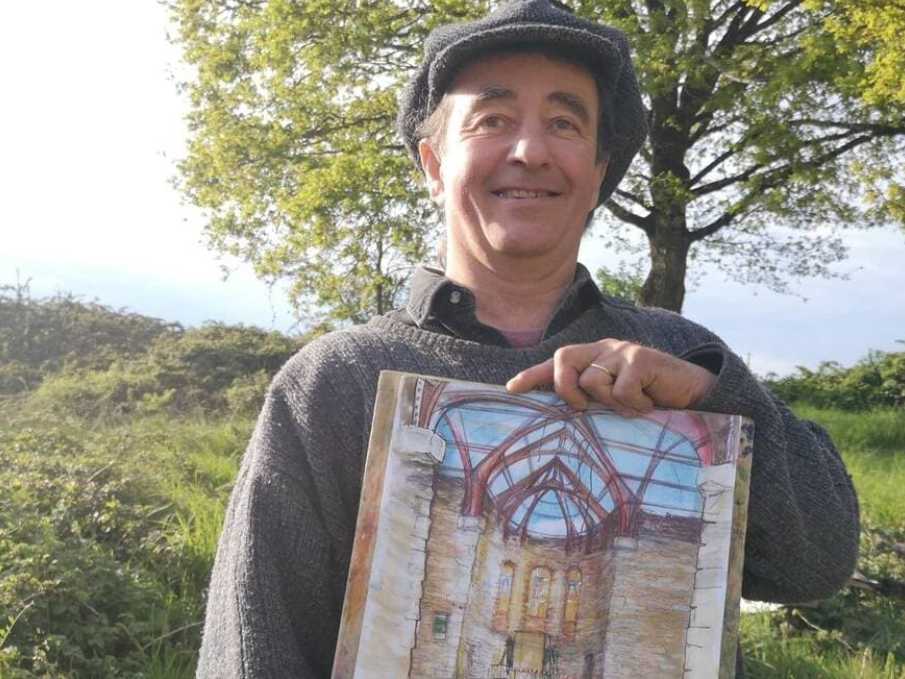 Cet artiste habitant à Saint Brieuc de Mauron a réalisé des dessins des différentes étapes de la dépose de la charpente